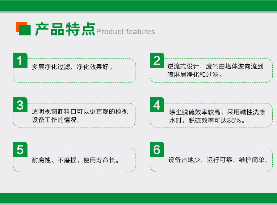 簡介:  噴淋塔(俗稱:水淋塔)是一種處理煙塵廢氣的濕式環(huán)保設備,可適用于發(fā)電廠燃燒煙塵、鋼鐵廠、鍋爐燃燒、垃圾燃燒等煙塵廢氣處理,這類的煙氣粉塵容易溶于水,噴淋塔是處理這類煙氣粉塵的不二之選。煙氣粉塵從塔底進入塔內,塔內有填料支撐板,噴淋塔從塔頂噴出液體,液體均勻的分布在塔內和污染物充分接觸,達到凈化的效果,最后塔頂排出。